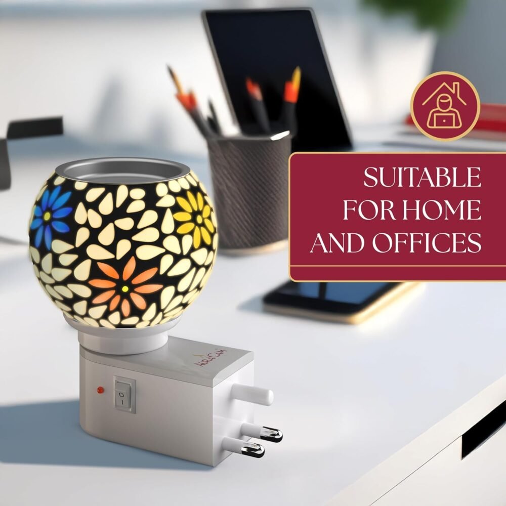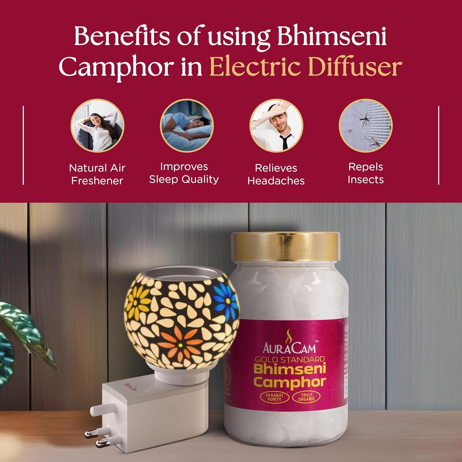 AuraCam Camphor Night Lamp Electric Diffuser | Essential Oil Diffuser | Auto Cut- Off for Added Safety | On-Off Switch | Sturdy 3 PinDesign | for Kapoor Dani Stand Home, Office, Bedroom (Pack of 1)