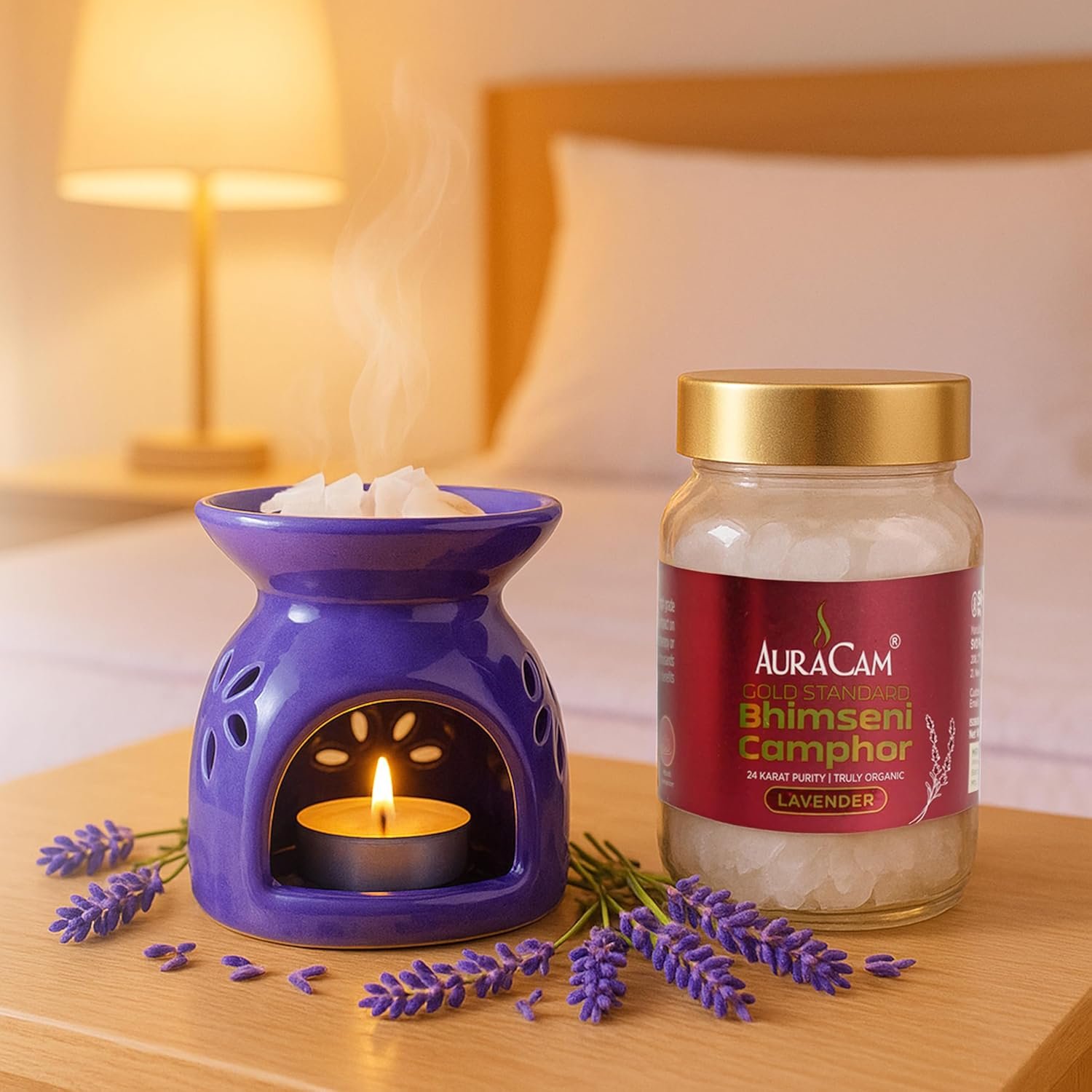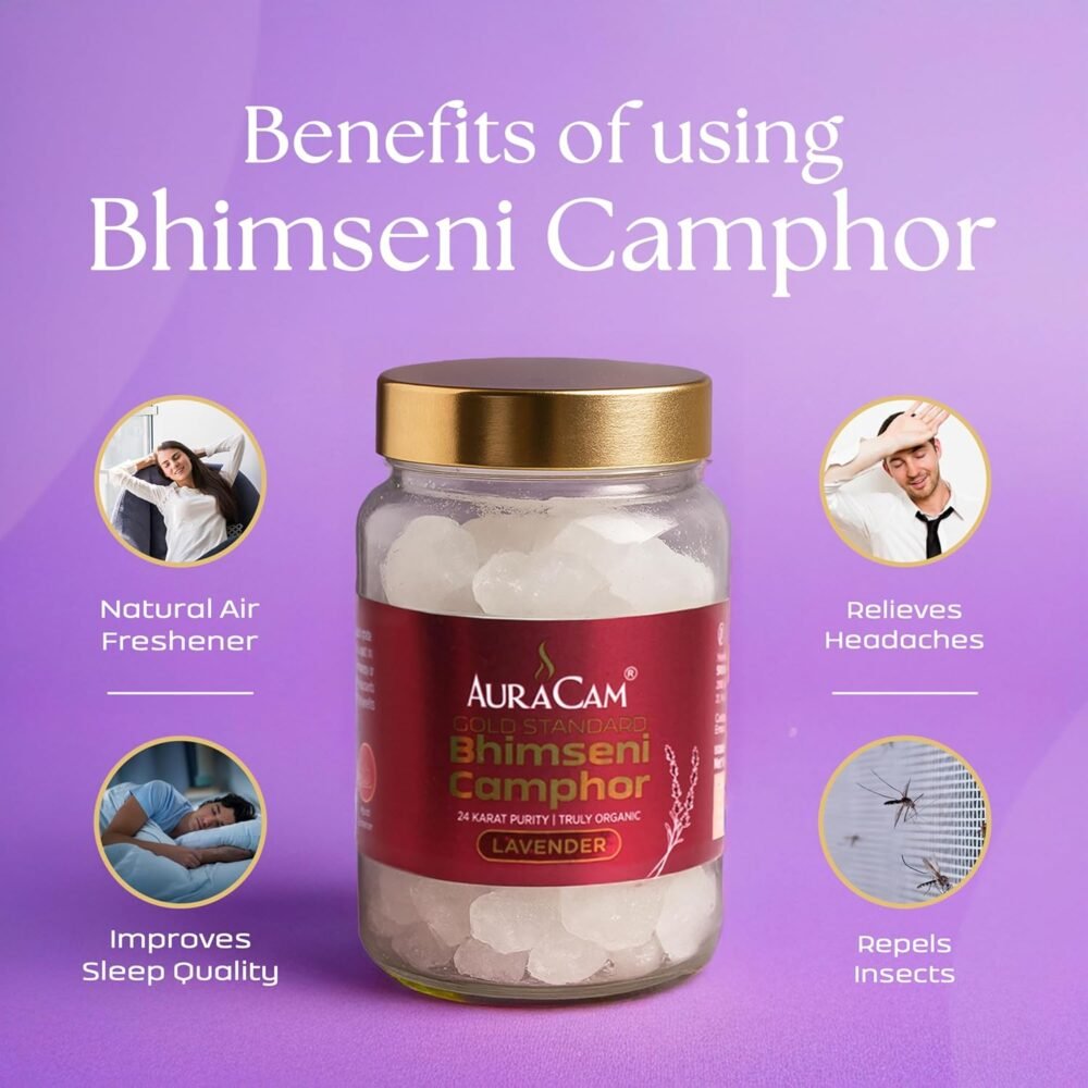 Place a small piece of AuraCam’s fragrant Bhimseni camphor onto your diffuser and let its soft burn fill the space with clarity and comfort. As the natural vapors release into the air, they not only purify your environment but also calm the mind and invite stillness into your space. It’s a simple yet powerful ritual that turns any corner of your home into a moment of intentional living.