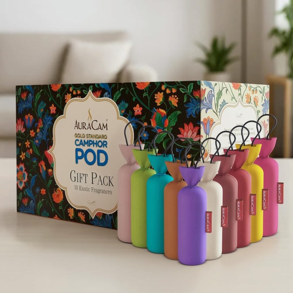 AuraCam Gold Standard Camphor POD Gift Pack 10 Exotic Fragrance HamperGift | Premium Gift Hamper