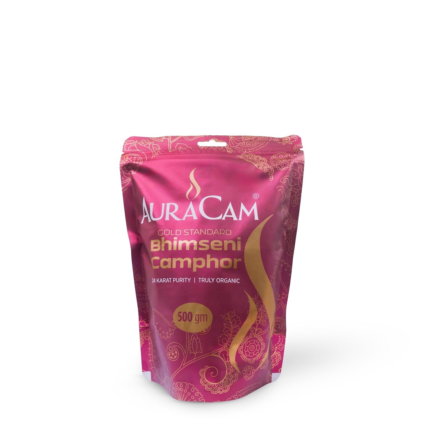 AuraCam Pure Bhimseni Camphor Pouch for Pooja, Hawan | Aromatic Kapooram | 100% Pure Camphor | Pure & Natural Pacha Kapur | Camphor for Pooja | Bhimseni Camphor Pouch (Pack of 1, 500 g)