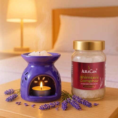 AuraCam Gold Standard Bhimseni Camphor – 100 GMS/Camphor for Pooja/100% Pure Brass Kapoor/Aromatic for Pooja, Meditation, Havan, Room Freshener/Pure & Natural Pacha Kapoor (Lavender Flavour, 100 gm)